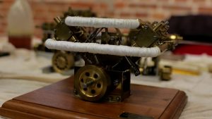 Die ca. 20 Aussteller kommen zum Teil schon seit vielen Jahren zu diesem Ereignis nach Eystrup. Etliche Modelle wurden ausgestellt und betrieben. darunter Sägewerke, Spielzeugdampfmaschinen, Stirlingmotoren, historische Dampfschiffe und komplette Dampfmaschinen Dioramen in Funktion. Die Baujahre dieser kleinen technischen „Wunderwerke“ belaufen sich auf die Jahre 1920 bis 2024. Sogar „Neubauten“ waren dabei. Viele davon in erstaunlicher Handwerkskunst zu Hause, nach Plänen oder nur nach eigenen Ideen geplant und gebaut wurden. Das besondere: Alle sind funktionsfähig. Auffällig dabei ist auch, dass es auch junge Begeisterte dieser Modelle gibt, die in ihrem Können den „alten Hasen“ um nichts nachstehen!