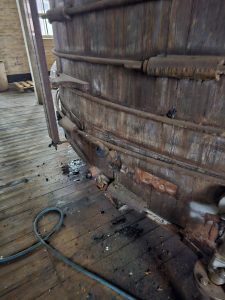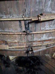 Wir möchten diesen Bildner unter allen Umständen betriebsfähig erhalten, da der in ihm produzierte Essig vollständig biologisch ist und einen einzigartigen, milden Geschmack aufweist. Leider ist der Behälter auf Grund mangelhafter Pflege in den letzten Jahrzehnten in einem bedenklichen Zustand, der eine dringende Sanierung zwingend erforderlich macht. Trotzdem der Bildner unter Denkmalschutz steht, ist es momentan extrem schwierig, dafür Förderungsmittel zu bekommen.